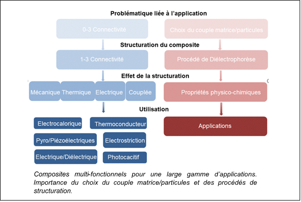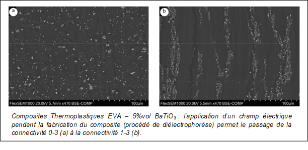 Les composites piézoélectriques en configuration constitués d'une phase céramique piézoélectrique particulaire dispersée de manière aléatoire dans une matrice polymère, généralement désignée par 0-3. Ces composites sont des candidats possibles pour les capteurs intégrés dans les composites structurels.