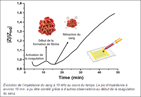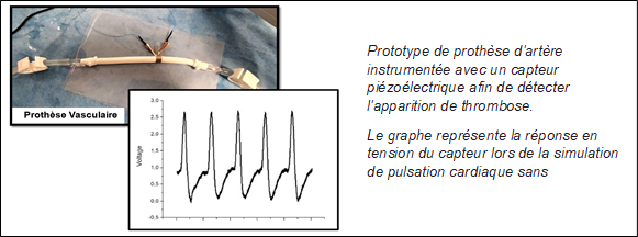 Depuis quelques années, le LGEF oriente également une partie de ses recherches sur l’analyse de matériaux biologiques (tissus, sang, …) par des techniques d’analyse dîtes physiques (électrique, mécanique, thermique). Toujours dans une optique de développer des DM innovants, cette évolution répond à un besoin de mieux comprendre le comportement du vivant vis-à-vis de ces sollicitations physiques afin de pouvoir notamment développer de nouveaux types de capteurs. Le laboratoire a ainsi pu mettre en évidence un marqueur électrique de la coagulation du sang (thèse de Giulia D’Ambrogio). Ce résultat a permis d’imaginer une prothèse d’artère intégrant des électrodes de mesures afin de détecter la formation d’une thrombose par une mesure d’impédance du sang.