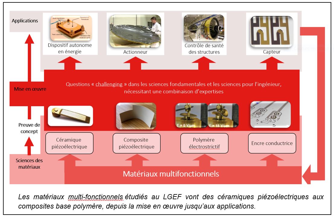 Notre laboratoire s’intéresse aux matériaux multi-fonctionnels depuis leur mise en œuvre jusqu’aux applications. La compréhension de leur comportement en lien avec le procédé de fabrication est au cœur des activités du laboratoire. Elle se fait via des caractérisations structurales, électriques, thermiques, mécaniques, et multi-physiques (électro-mécanique, magnéto-caloriques…), et s’accompagne le plus souvent de la modélisation et de la simulation du comportement des matériaux.